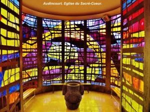 Construite en 1950 dans le quartier des « Autos » à Audincourt, l’église du Sacré-Cœur est un joyau de lumière avec les vitraux dessinés par les artistes Fernand Léger (1881 - 1955) et Jean Bazaine (1904 - 2001).