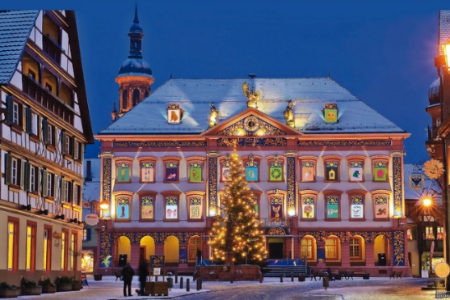 Depuis plus de vingt ans, l’Hôtel de Ville (XVIIIe siècle) se transforme en maison du calendrier de l’Avent avec ses 24 fenêtres illuminées.